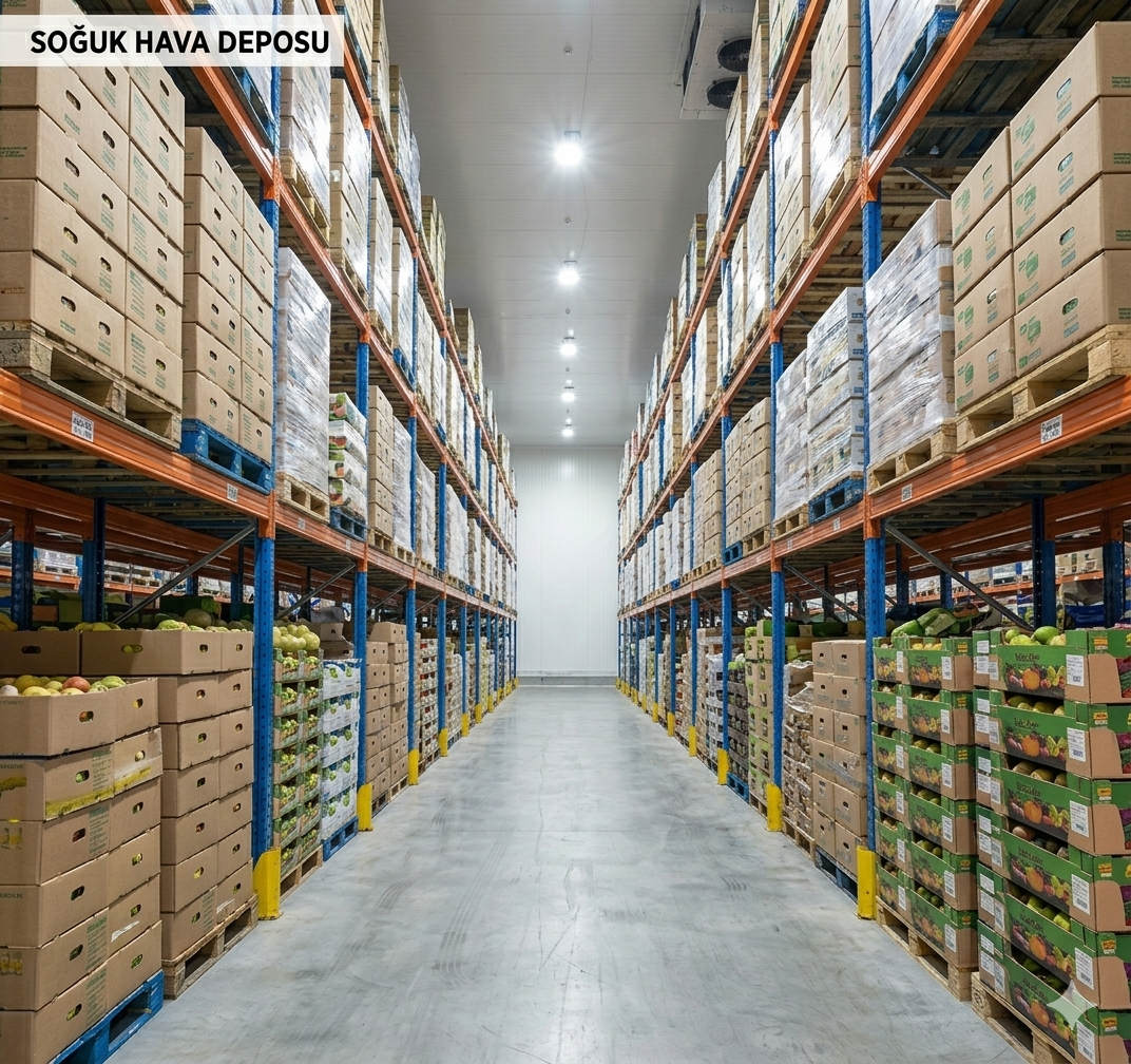 Büyük ölçekli ürün sevkiyatı ve muhafazası için kullanılan, yüksek kapasiteli endüstriyel soğutma tesisleridir.